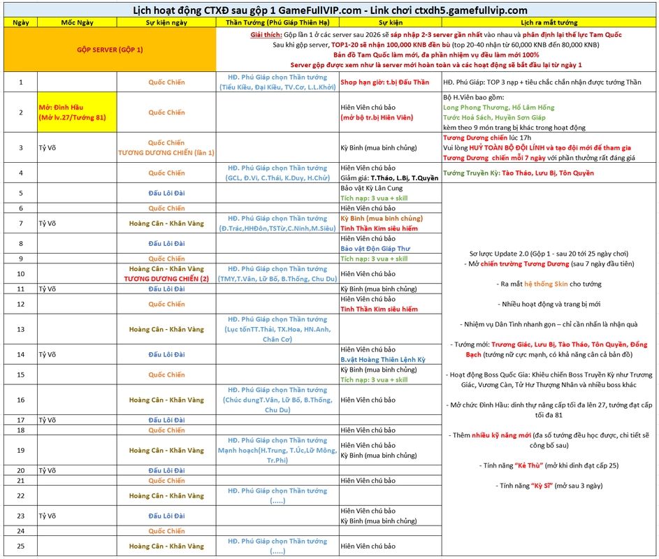 Việc gộp server sẽ được cân nhắc kỹ lưỡng dựa trên số lượng người chơi thực tế để đảm bảo môi trường cạnh tranh lành mạnh. Khi một server quá ít người chơi, chúng tôi sẽ chủ động gộp lại để tăng tương tác giữa các bằng hữu.