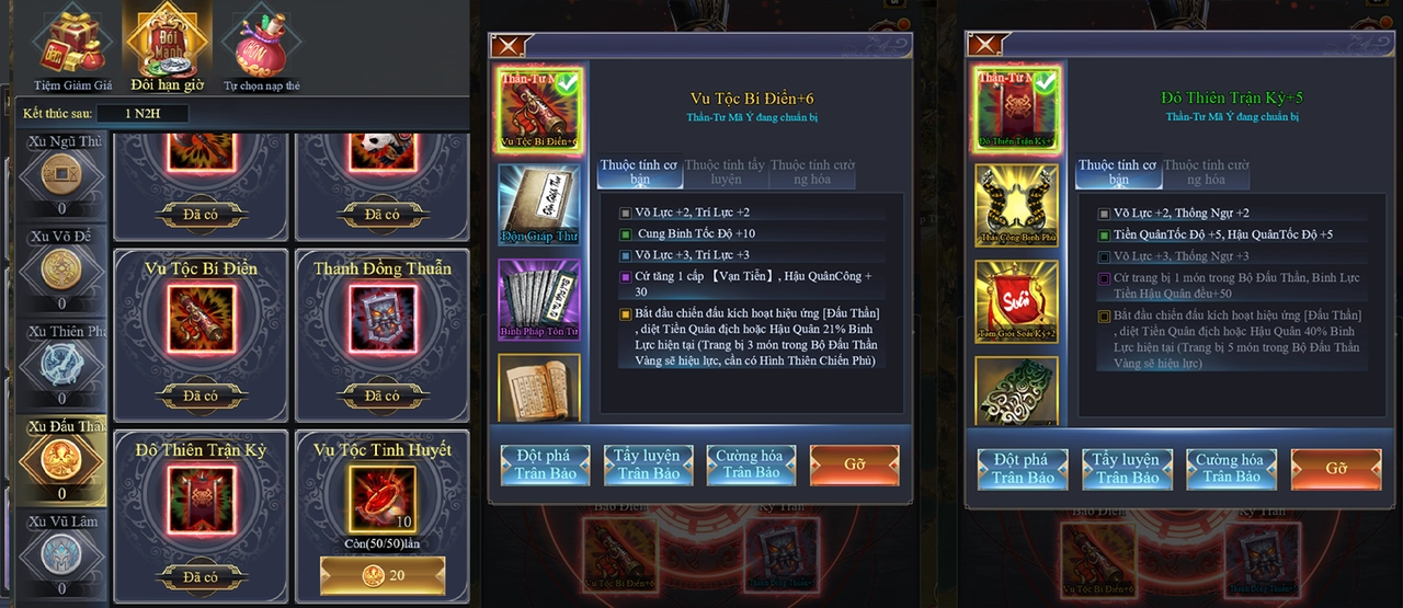 - TÍCH NẠP bộ Đấu Thần, thông số chi tiết cho bộ Đấu Thần