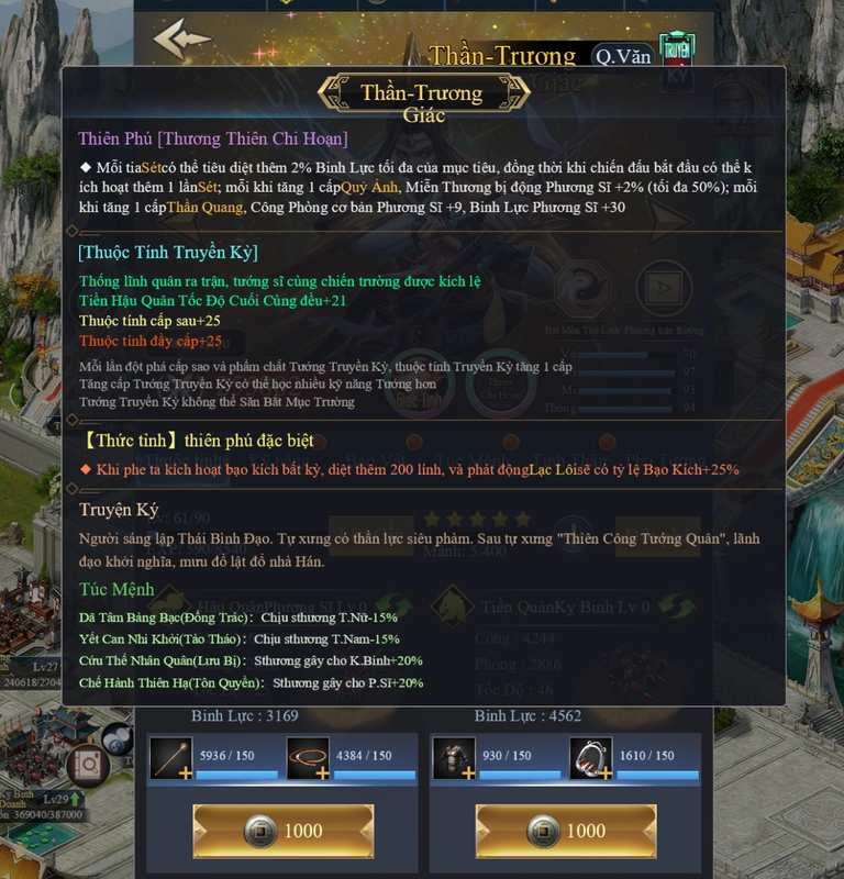 Trương Giác nhận từ Tế Đàn (30 mảnh/ngày), GỘP 2 sẽ có thể tăng lên Thần. Hình ảnh bên dưới được lấy từ GỘP 2 - Thần Trương Giác.
