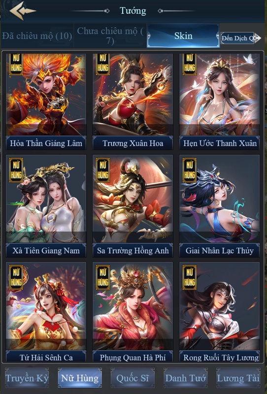 Tổng cộng có 8 skin lính (bộ, cung, kỵ, phương sĩ). Yêu cầu level 27.