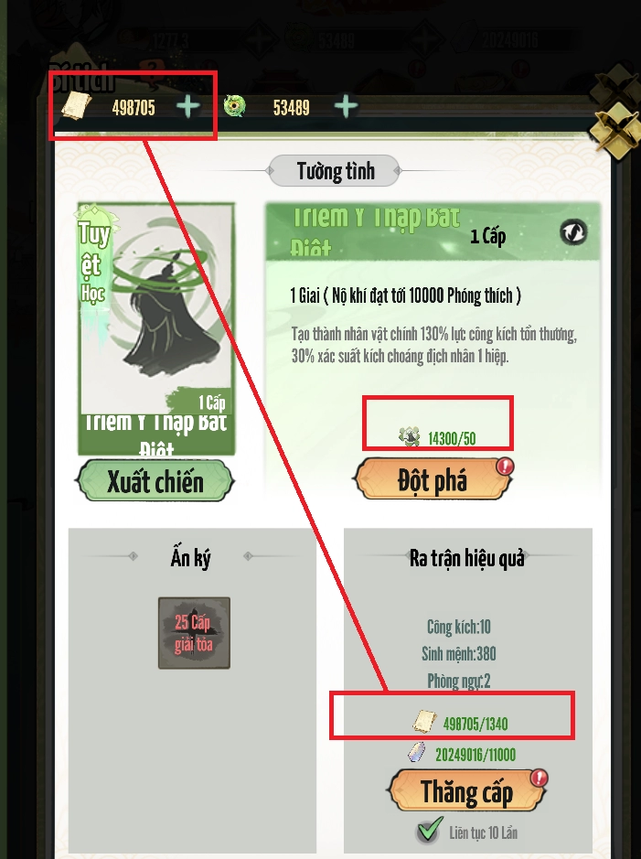 Sau khi nhận được bí tịch từ vòng quay và hoạt động. Vui lòng lựa chọn "XUẤT CHIẾN" trong giao diện để bí tịch có hiệu quả.