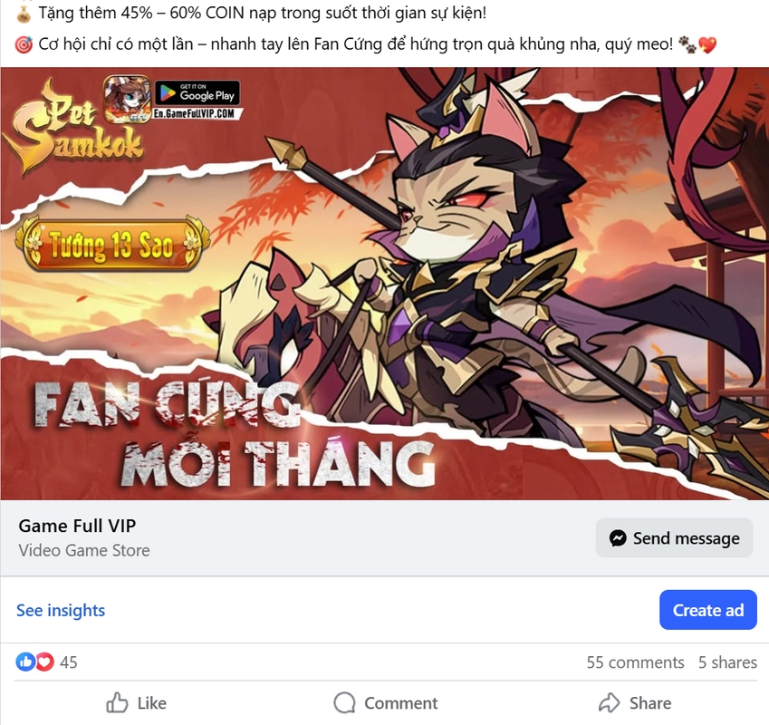 Bài viết Fanpage Pet Samkok Game Full VIP VN: