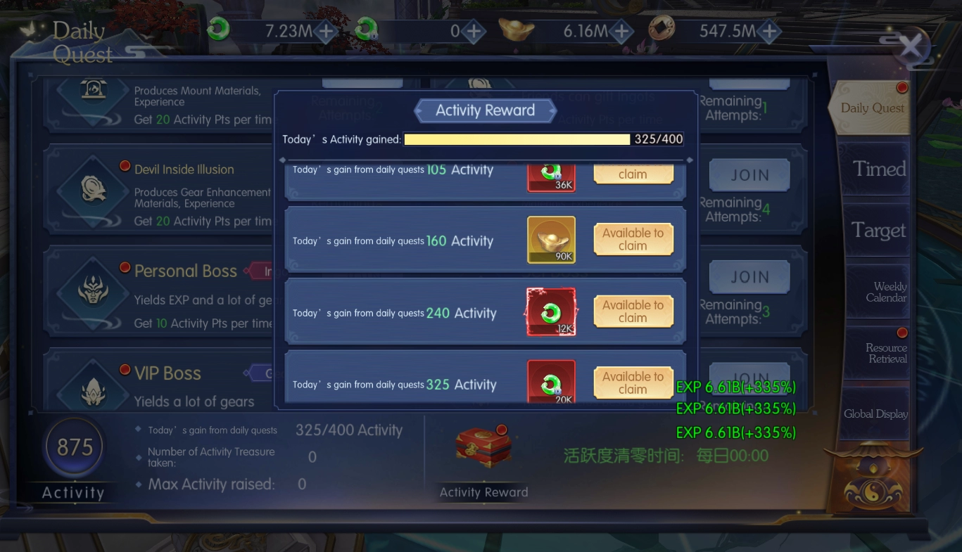 Đăng Nhập & Nhiệm Vụ Hàng Ngày: Hoàn thành nhiệm vụ hằng ngày để nhận ngay 90.000 Vàng, 58.000 Ngọc (khoá), và 24.000 Ngọc (tích lũy điểm VIP).
