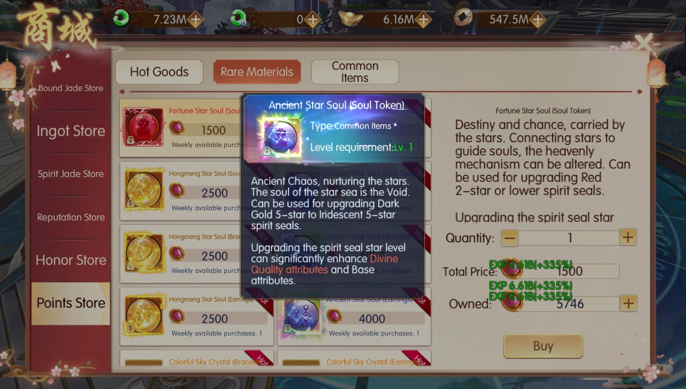 Các vật phẩm mới bao gồm Bộ Đá (nam nữ) & Đá Trang Bị, Hồn Hồng Mông và nhiều vật phẩm khác