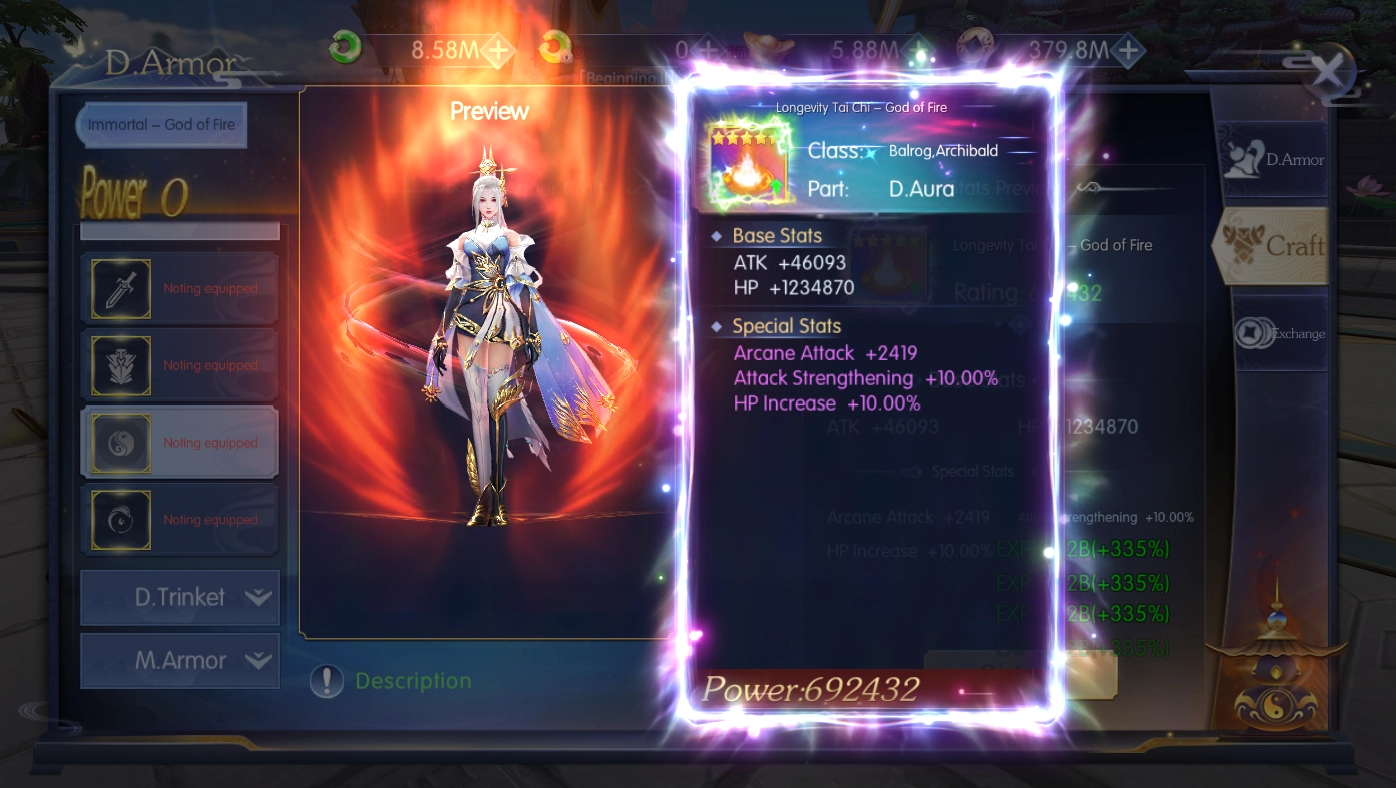 Hệ thống Bát Quái đi kèm Tiên Giáp (hiện tại chưa mở full, trong update 2.1 sẽ có thêm thông tin)