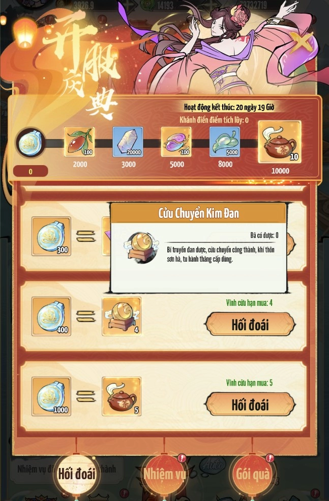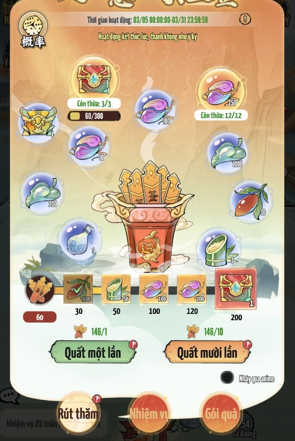 Hoạt động bao gồm Rút Thăm Như Ý và Server mới
