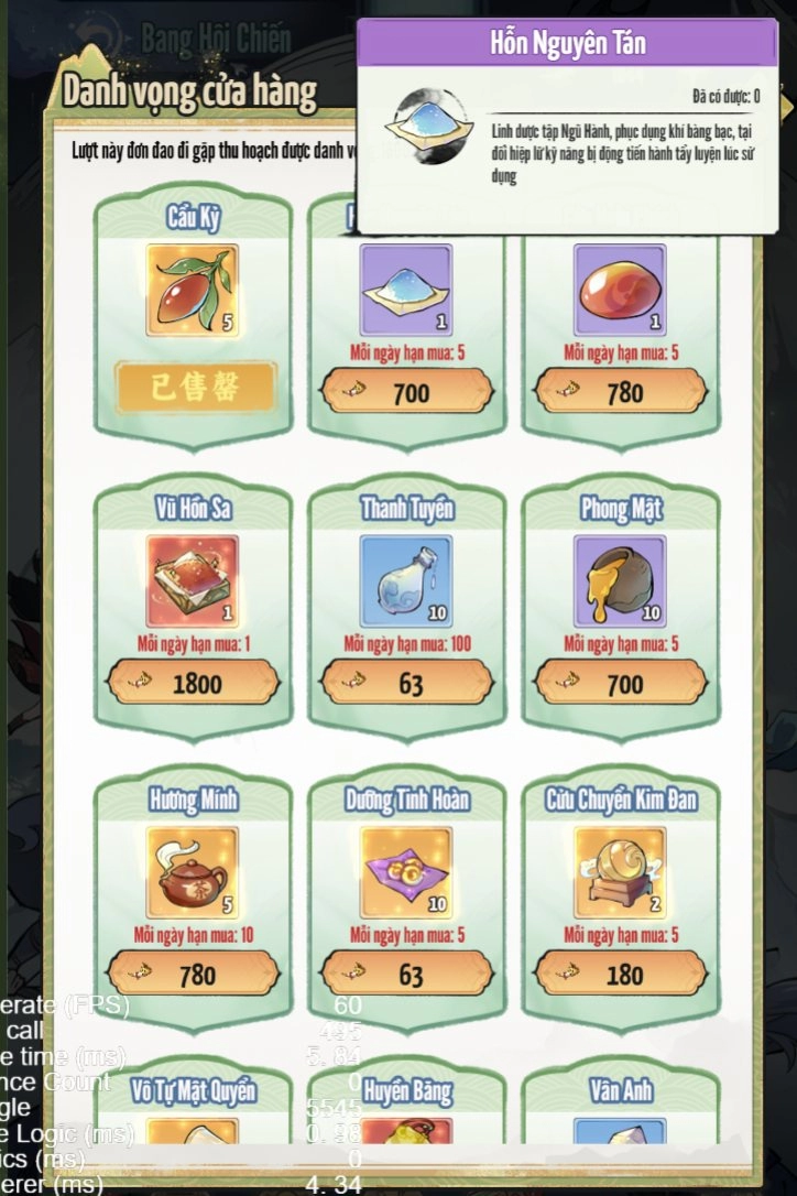 SHOP: Mở thêm vật phẩm tẩy luyện hiệp khách: Hỗn Nguyên Tán, Cửu Nghi Phách, Vũ Hồn Sa
