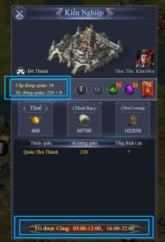 Tất cả thành trì: có thể đánh liên tục từ 5h sáng đến 23h đêm